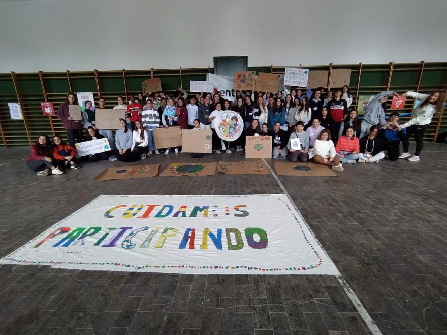 La inclemencia del tiempo no nos permitió salir a la calle para llevar a cabo nuestro acto de movilización, pero como estas Redes son imparables, hicieron el acto de movilización en el pabellón con todos los materiales que habían ido creando a lo largo de la Yincana.