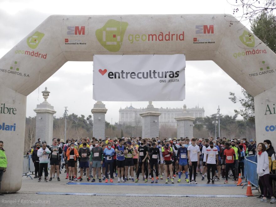 “Emociona pensar que lo que pase aquí hoy puede llegar tan lejos”, afirmó Beatriz de Felipe, Coordinadora del Área de Desarrollo Institucional, que dio paso a la entrega de premios al finalizar las carreras de adultos (donde los/as participantes tenían la opción de correr 5km, 10km o 5km en marcha). Daniel Villanueva, Vicepresidente Ejecutivo de Entreculturas, tomó la palabra agradeciendo y recordando: “Este año estamos apoyando la Amazonía y la defensa de los derechos de los pueblos indígenas, especialmente de las mujeres. Las defensoras del territorio que representan la lucha de la humanidad por preservar el pulmón del planeta”.