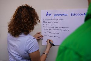 En torno a esta temática, las organizaciones que estamos en Maldonado, nos reunimos en la terraza para tener un tiempo de dinámica y reflexión sobre las diferentes maneras de escuchar (con cuidado y sin cuidado) y el impacto que éstas tienen en las personas.