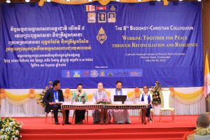 Bajo el lema Trabajando juntos por la paz a través de la reconciliación y la resiliencia, más de 100 personas —budistas de distintas corrientes, católicos y musulmanes— de más de 15 países, principalmente asiáticos, nos encontramos en Phnom Penh para explorar y reflexionar sobre cómo la resiliencia y la reconciliación pueden ser instrumentos poderosos para construir la paz. Durante los cuatro días de intensa reflexión, compartimos experiencias y pensamientos que revelan cómo las tradiciones del budismo y el cristianismo, desde sus raíces más profundas, pueden alimentarse mutuamente en un espíritu de respeto y fraternidad.