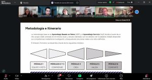El miércoles día 21 de enero dio comienzo Educa en Global la formación pensada para acompañar al profesorado en su crecimiento personal y profesional a través de metodologías activas, el trabajo por retos y la educación transformadora. Así de manera online más de 30 docentes asistían a la primera de 6 sesiones, donde han iniciado el recorrido para aprender a aplicar el Aprendizaje Basado en Retos (ABR) y el Aprendizaje Servicio (ApS), conectando el currículo con el entorno y así adquirir herramientas para formar al alumnado como ciudadanos y ciudadanas comprometidas.