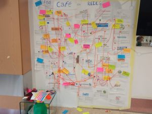 A media mañana realizamos el Café con Redes una dinámica que pretendía que las organizaciones socias se conocieran entre sí viendo puntos en común entre todo el trabajo que se hace. Esta parte fue dinamizada por Entreculturas. Posteriormente se genera un espacio informativo para conocer a los diferentes grupos de trabajo de REDES y saber en qué líneas están trabajando (Educación, voluntariado, proyectos, feminismos, incidencia)