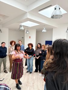 Esta sesión nos llevó, además, a salir de la Casa San Ignacio y recorrer La Ventilla, este histórico barrio madrileño que nos ha acogido durante estos meses. La primera para fue en Radio Almenara, la emisora comunitaria del barrio, donde tuvimos la oportunidad de participar en un programa en directo y compartir la experiencia de formarnos en Fronteras. Fue un momento para poner voz a lo vivido, pero también para reconocernos como parte de una conversación necesaria y en la que debemos participar.