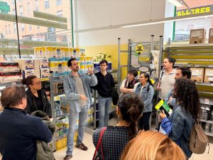 Seguimos caminando, esta vez con otra mirada: la de quien observa con más atención un territorio que ya no es solo lugar de paso. Mientras caminábamos nos contábamos… La Ventilla se fue mostrando como un entramado de iniciativas sociales y culturales que sostienen la vida del barrio: organizaciones sociales, espacios creativos, centros culturales diversos… y atravesando la calle que acoge cada domingo el Mercado de Tetuán llegamos a La Osa, el único supermercado cooperativo de Madrid. Allí, entre estanterías, productos ecológicos y conversaciones, constatamos algo sencillo pero potente: también desde nuestras decisiones de consumo estamos participando en la sociedad que construimos.