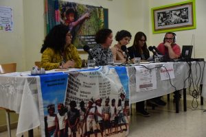 que se pudo seguir también es streaming y quedó grabado como podcast . Marita y Fátima  hablaron de la situación de la Amazonia y los pueblos que la habitan, de la vulneración de derechos, de la problemática ecosocial…….También contamos con la intervención de Angela Pedraza de la Asociacion Entreiguales , Coordinadora de Programa valenciano de Protección de defensores de derechos.