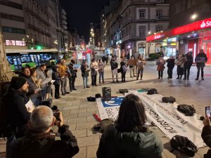 Posteriormente, realizamos un acto de movilización en el centro de la ciudad, un Círculo de Silencio por las personas migrantes, especialmente por las mujeres migrantes (vísperas del 8M) con una lectura compartida que puso el broche a una intensa jornada.