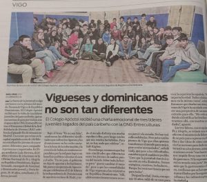 Y en Coruña asistieron a encuentros con jóvenes en el IES Rafael Dieste y en el colegio Virxe da Cela, donde estuvieron acompañados por el voluntario de A Coruña, José Luis Presedo y por nuestra técnica de Ciudadanía, Fanny.