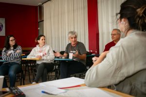 Al día siguiente, nos esperaba un día lleno de aprendizaje y seguir haciendo amigos/as con la programación habitual de una Asamblea compuesta de: un primer taller, un paroncito para un almuerzo, un segundo taller enlazando con la yincana. A su vez y paralelamente, educadoras y educadores, estaban disfrutando de charlar y compartir experiencias entre iguales en el taller que había preparado para ellas y ellos.
