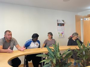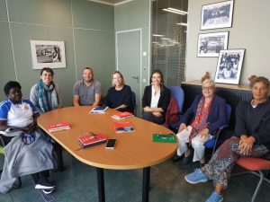 Con este plantel de estrellas y con nuestra Delegada Maria Jesús Banciella nos fuimos a charlar con la Directora de la Agencia Asturiana de Cooperación Internacional al Desarrollo Beatriz Coto Rodríguez. Durante más de una hora y cuarto pudimos presentar la campaña de Vuelta al Cole de este curso, así cómo las diferentes actuaciones que se llevarán a cabo con el proyecto de Acción Humanitaria subvencionado por la Agencia en Adjumani (Uganda)
