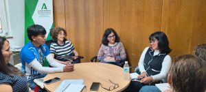 El grupo junto a la delegación de Sevilla fue recibida por la Responsable de la unidad de cooperación internacional, junto a las técnicas de Educación para el Desarrollo (EPD) y proyectos en América Latina. El diálogo no fue solo técnico, sino profundamente humano y político, poniendo en el centro la necesidad de seguir apostando por el protagonismo juvenil.