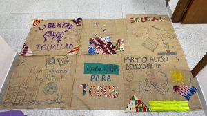 Fue un espacio de encuentro, reflexión y participación en el que la voz de los y las jóvenes se situó en el centro, recordándonos que su mirada, energía y compromiso son fundamentales para seguir transformando la realidad. Asimismo, las ideas clave extraídas de la mañana quedaron recogidas de forma artística en una arpillera, así como en la creación de un manifiesto final, donde la juventud expuso con sus propias palabras lo que consideran más urgente y necesario en relación con las causas expuestas.
