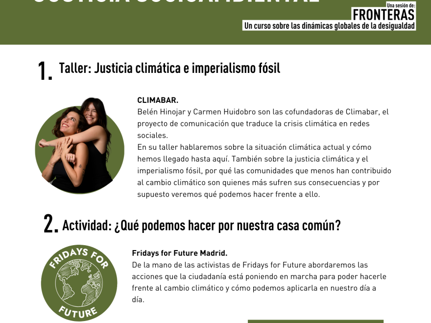La justicia socioambiental es el tema principal de la sesión de este sábado en el curso Fronteras de Madrid. La